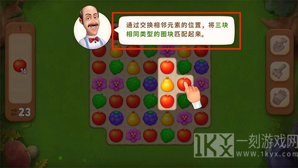 7、这一次消消乐游戏,根据互换邻近的元素部位,将三块相同类型的图块配对起来也能消除了;