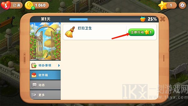 10、然后看到花园早已收拾干净,就可以在待办事宜中领取礼包;