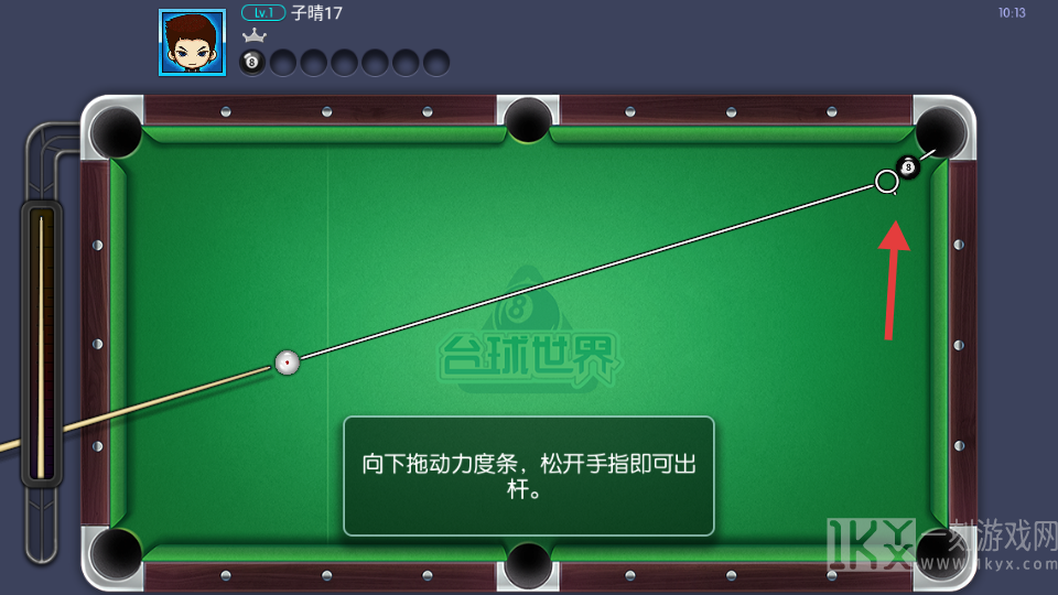 开球的时候,一定要利用好机会与技巧,开局的第一杆一般是获得胜利的关键所在,在玩游戏的时候,务必在开局进两个球之上。