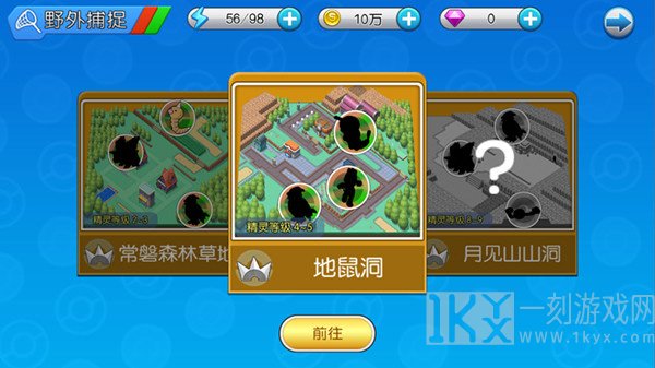 玩家可以通过上下拖拽地图来挑选要前往的副本,选中以后,点击进入前去按钮即可快速进入相对应的捕获地图。