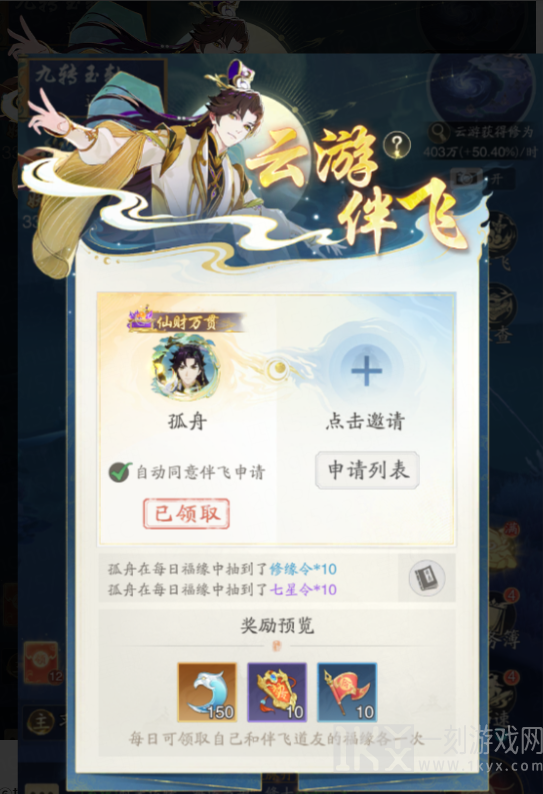 这对零氪玩家来讲,是一项不可错过的活动,每天可邀请一位别的玩家和自己伴飞,伴飞以后可以领包含“成就”、“七星令”、“修缘令”在内的各种奖赏,都是零氪玩家获得“成就”的一项主要途径。