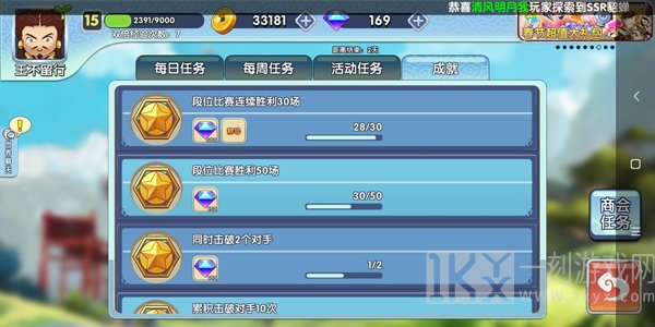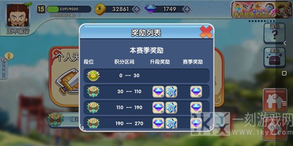 排位赛奖励丰富,每15天升级本赛季,本赛季排行还能够获得额外的真关云长残片和金刚石奖励