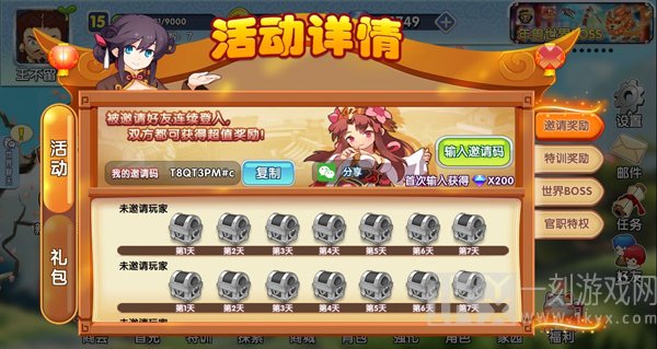 褔利特性邀请奖励,自身随意填别人的推荐码,会获得唯一一次奖励200钻