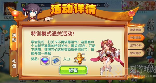 3、训练奖励每关奖励60钻,过关所有15关,奖励200钻(闪烁其词,顺带学习操作过程)
