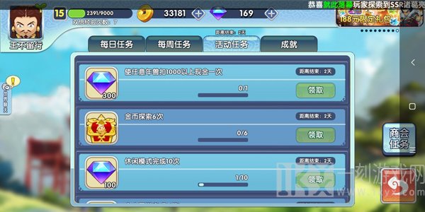 9、武道大会武道大会比赛夺得冠军会获得1000钻石