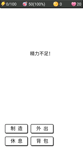 4、精力用完之后可点击回家了修整,在生产栏里可以消耗材料制成武器装备或是游戏道具。