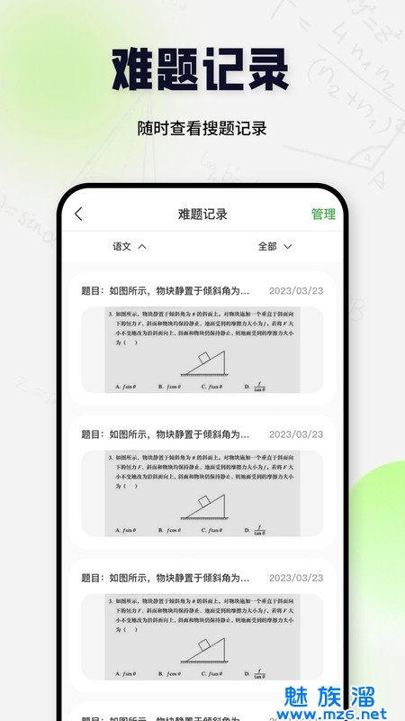 3、也可以进行难题纪录,随时使用软件轻轻松松的拍照搜题,能够快速掌握一定的解题方式。