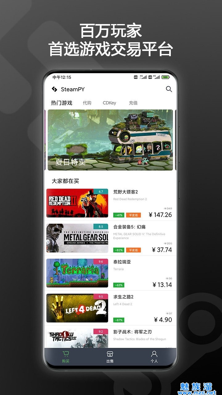 steampy官方版是一款非常火热的游戏账户交易手机软件,这个软件就是针对steam客户推出的,自然今天小编就来所带来的这个软件是绝对安全的,用起来简易,并没有复杂的操作,根据这个软件,大伙儿能够快速的进行交易,还能够让我们在steam上划算,特惠一级棒哦,快下载使用吧。