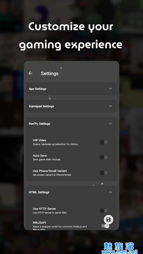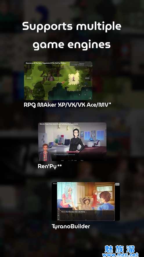 JoiPlay能够在你的Android设备中运作大部分Ren'Py,RPG Maker XP/VX/VX Ace/MV,TyranoBuilder和基于HTML的游戏。