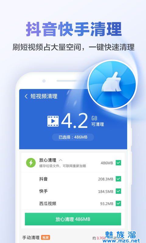 1、一键清理垃圾,快速释放存储空间。