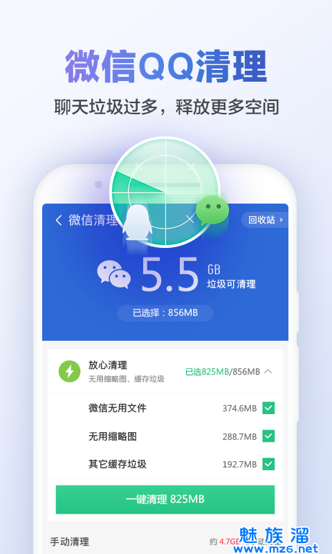 1、一键快速删除未使用的文档从您的手机,同时提供非常丰富的洁净技术。