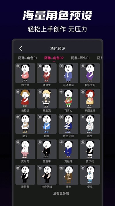 2.有着丰富的人物角色可以用,用户在使用中能够满足自己写作念头。