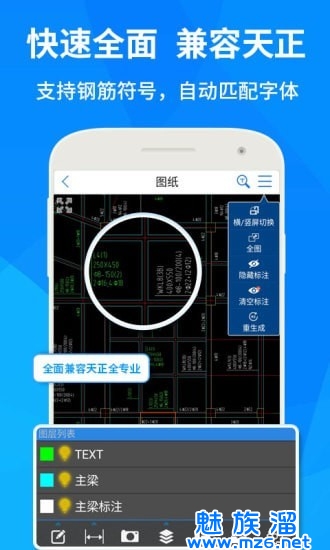 适配不一样版本的AutoCAD手机软件,各种各样图纸随便看,并且不会有无法打开文字有错码的现象。