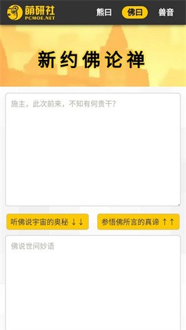 进到软件后,手机软件给予熊曰(与熊品茶论道)、佛曰(新约佛论禅)、兽音(兽中文谐音者)。
