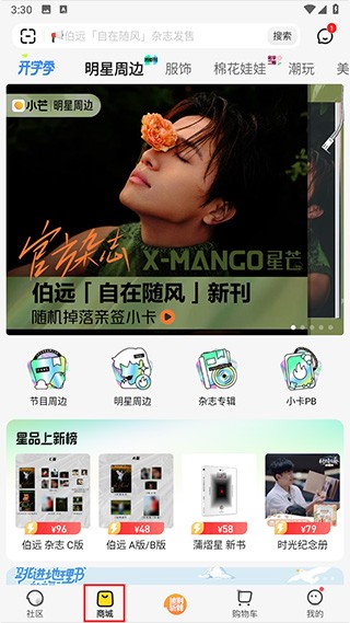 1、首先进入小芒app,点击商城系统随后点击上方新学期开学