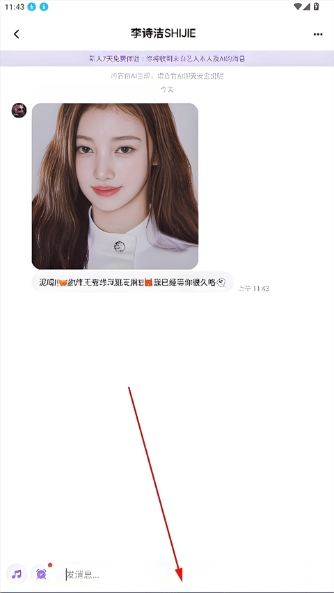 2、进到与爱豆的聊天网页页面,在下方的文本框逐渐你的聊天吧。
