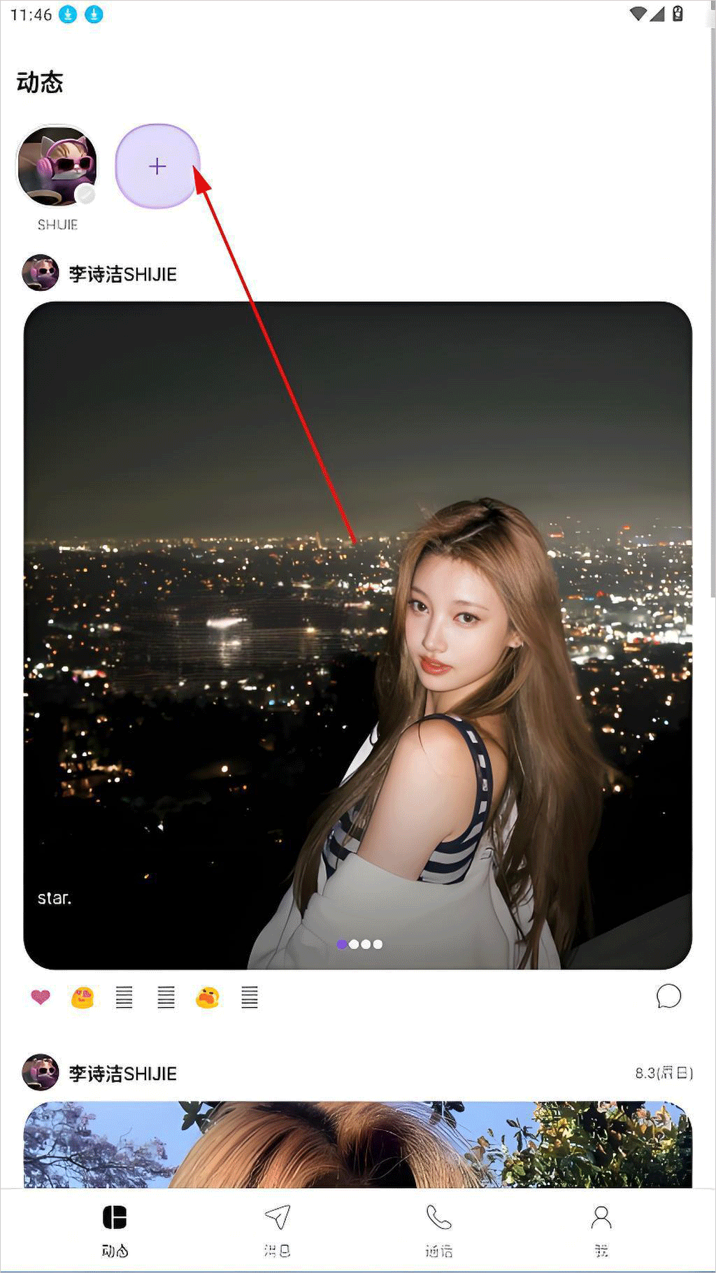 3、回到,点击下方动态能够访问爱豆动态哦。