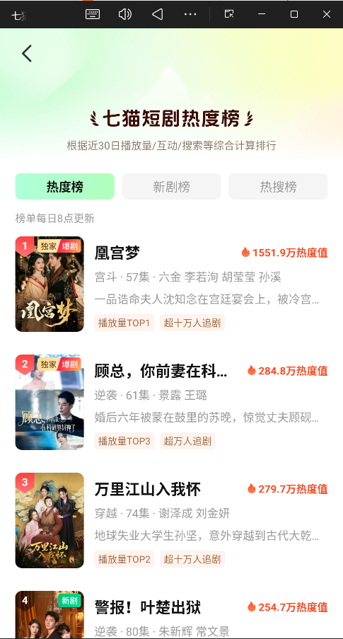 全部短剧全部采用超清画质制做,画面细节主要表现细致,色彩还原度真正,为用户打造出沉浸式体验视觉体验。