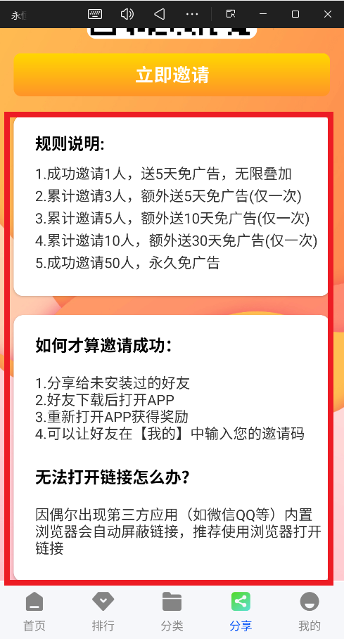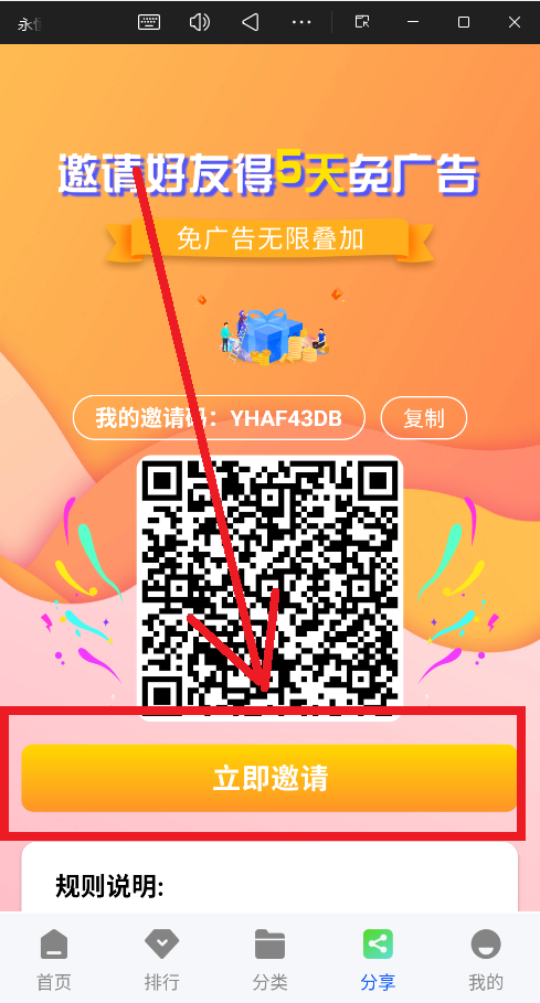 4、取得成功邀约后,你和好朋友都能获得 5天免广告 奖赏。邀约越大,免广告时间越久,乃至可以叠加至永久性。